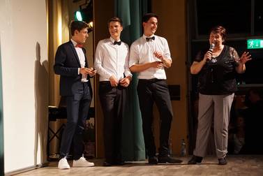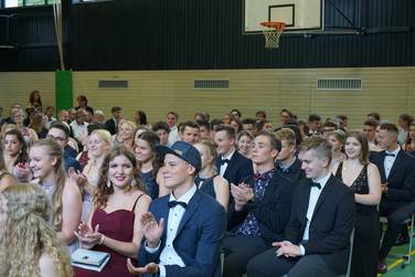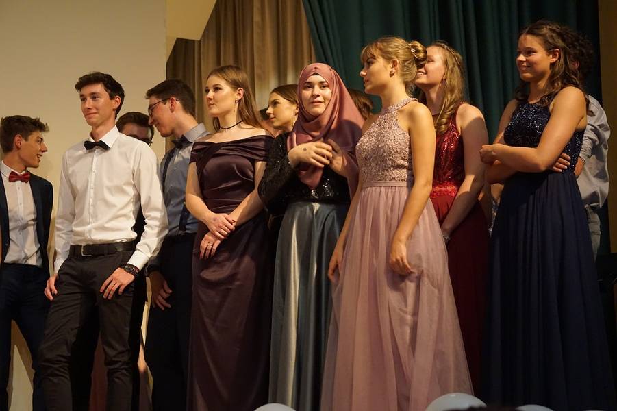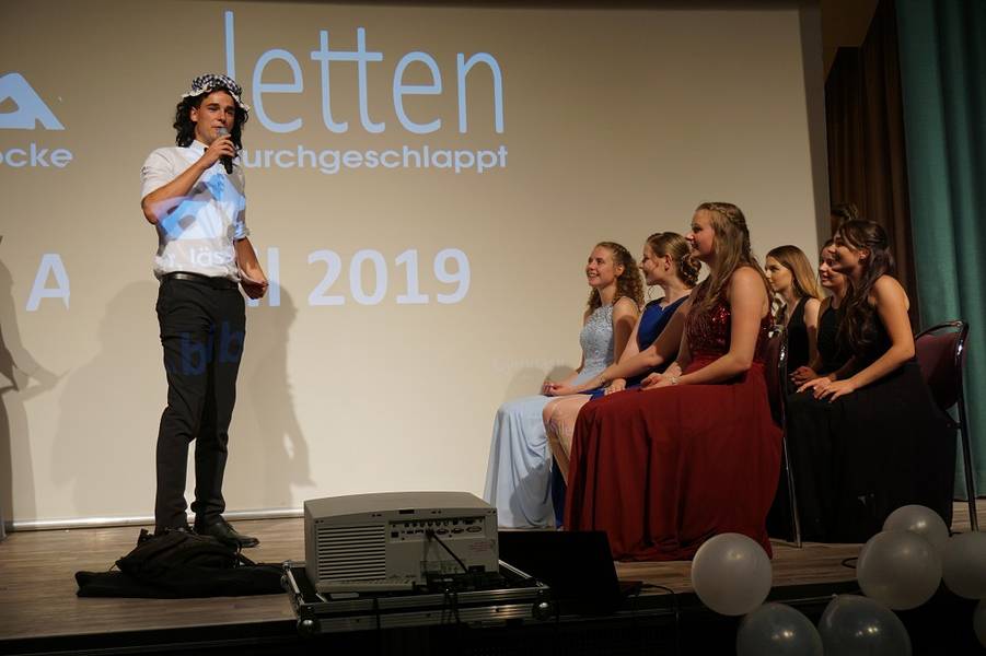 „Abicup 2019“ – ein Transparent mit dieser Aufschrift empfing die Besucher des Kurhauses zum anschließenden Abitur-Ball und weckte beim anwesenden Lehrkörper sogleich schlimme Befürchtungen. Zu Unrecht, wie sich herausstellte: Ähnlich wie in den vergangenen Jahren erwies sich der Abiball 2019 als kurzweilige, gediegene Veranstaltung, bei der nur selten jemandem die Luft weg blieb. Einzig das Quizduell – Abiturstufe gegen Lehrerkollegium – brachte die Lehrerinnen und Lehrer ins Schwitzen: Bei der Beantwortung wissenschaftlicher Fragen aus den jeweiligen Fachgebieten der Lehrkräfte kamen diese nicht über ein mageres 2:5 gegen die mit geballter Expertise ausgestatteten Schüler hinaus. Die Strafe folgte auf dem Fuß: eine Runde Ententanz.