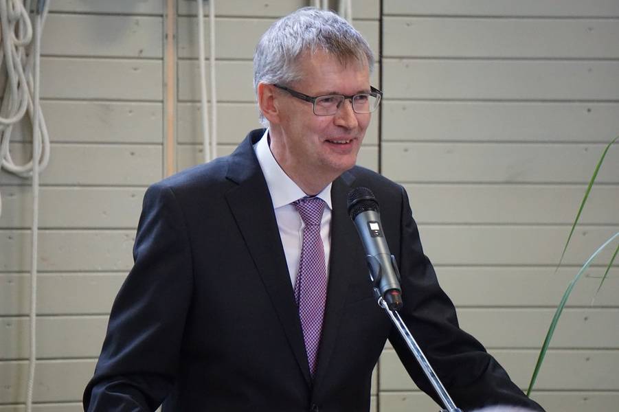 Zum einen, so betonte Schulleiter P. Friedrich Emde bei seiner Rede zur Zeugnisverleihung, bestehe eine gewisse Notwendigkeit zum besonnenen, nicht überstürzten Tempo, sowohl in der Schule als auch im Leben nach dem Abitur, das den Schülerinnen und Schülern nun bevorsteht. Mit Verweis auf den Soziologen Hartmut Rosa und des von ihm geprägten Begriffs der Beschleunigung als kulturhistorischer Grundvokabel der Gegenwart, warnte der Schulleiter sowohl Eltern als auch Schüler vor dem unreflektierten Gebrauch von Medien und der Rastlosigkeit im Denken und Handeln. Zugleich erläuterte er am Begriff der Resonanz (ebenfalls ein Schlüsselbegriff bei Hartmut Rosa), was guten Unterricht ausmacht: Die Fähigkeit, insbesondere von Lehrerseite, eine knisternde Spannung zu erzeugen.