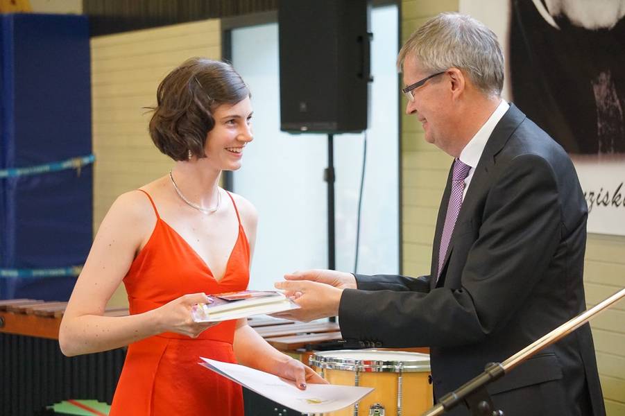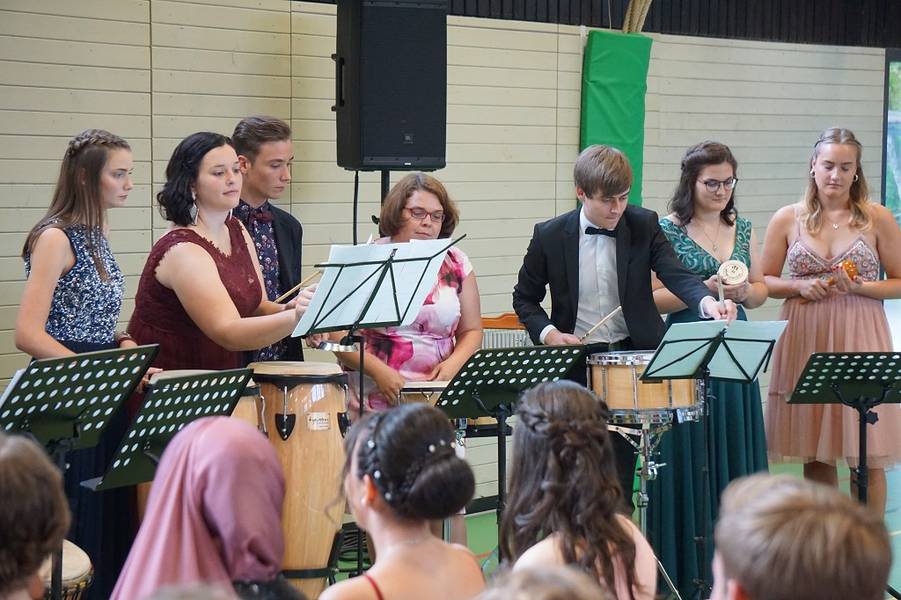 Ein besonderer Dank geht an den Neigungskurs Musik der Abiturstufe unter der Leitung von Christine Braig und an den Percussion-Solisten Tim Waizenegger für die musikalische Gestaltung des Festakts in der Turnhalle des Salvatorkollegs.